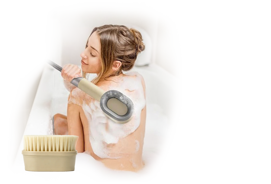 Kartáč je navržen tak, aby pomohl snadno vyčistit i hůře dostupná místa, jako jsou záda, ramena nebo zadní část paží. Zároveň pokožku jemně masíruje, podporuje prokrvení a napomáhá lepšímu vstřebávání pečujících přípravků.
