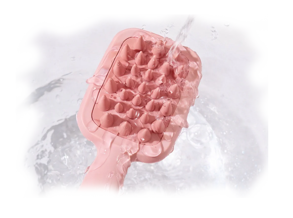 Ergonomický design s praktickou rukojetí zajišťuje pohodlné držení a stabilitu i při použití ve sprše. Kartáč můžete používat na mokré i suché vlasy, při mytí vlasů, aplikaci šamponu nebo během relaxační masáže pokožky hlavy.