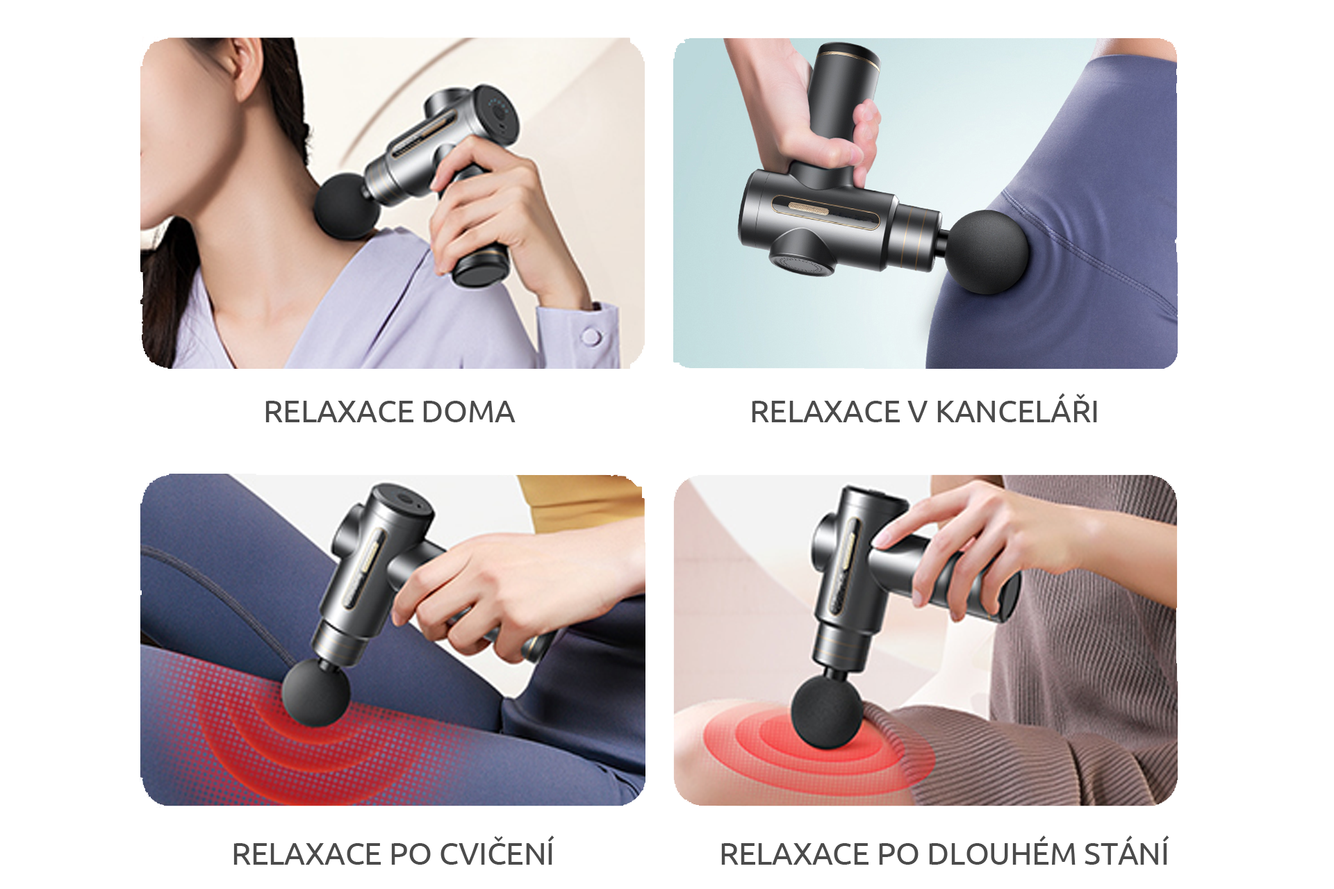 Přímým působením na hlubokou svalovou skupinu díky síle masážní pistole GLOX 750 dochází k výraznému uvolnění a relaxaci každé svalové buňky.