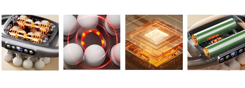 Silný motor, AI čip a kovové části masážního přístroje dělají z GLOX S6 silného a účinného pomocníka, který dokáže silou až 48 kg namasírovat vaše tkáně až do hloubky 35 mm. Rychlé nabíjení a dlouhá výdrž baterií umožní používat masážní přístroj kdykoli a kdekoli bez omezení.