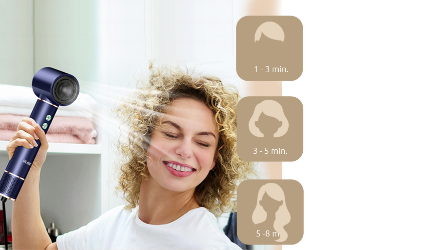 Úspora času: Díky vysoké rychlosti a silnému proudění vzduchu je sušení vlasů rychlé a efektivní.